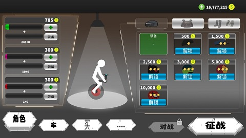 1、玩家操控火柴人驾驶独轮车在多变赛道中竞速,需同时兼顾平衡控制、障碍躲避与对手对抗。