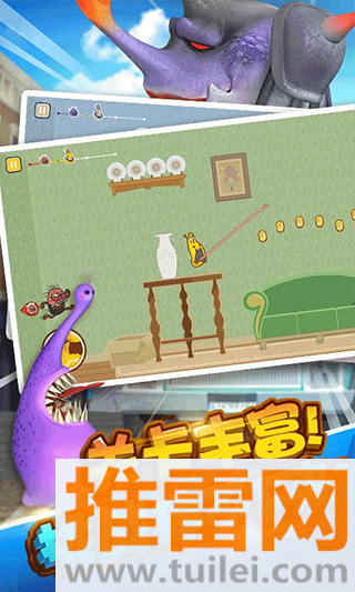 2、遇到密集障碍时,优先用舌头勾高点飞跃,比贴地绕行更安全,还能顺手捡高处金币。