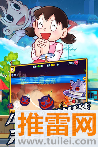 哆啦A梦快跑大冒险这游戏,玩起来就像翻开了小时候的漫画书——大雄、静香、胖虎、小夫全都活了过来,在五彩缤纷的2D世界里撒腿狂奔,你不用记复杂操作,左边滑铲、右边跳跃,手指点两下还能二段跳,轻松躲开路上的箱子、铁桶和突然冒出来的怪物,场景从街道跑到海底,再飞上天空,背景一直在变,一点不腻,角色全带被动技能,比如大雄挂了能原地复活,小夫跑完多拿金币,静香路过自动吹泡泡困住敌人,胖虎开演唱会直接无敌……这些都不用你手动放,系统自动触发,你只管往前冲、捡金币、踩怪拿分,画风鲜艳得像糖果罐打翻了,连障碍物都透着股童趣,跑着跑着就忘了时间,只想再冲一关,看看能解锁啥新角色、新地图。