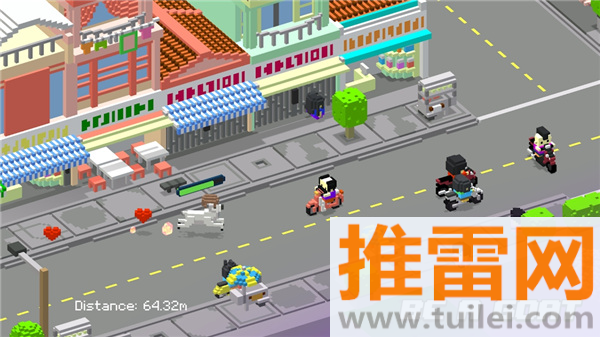 3、道路行人不会主动避让,碰撞会导致减速或任务失败,考验路线预判与变道时机。