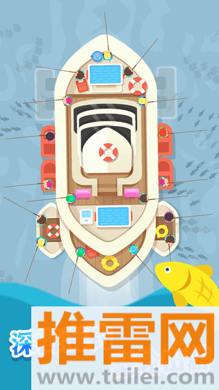 1、玩家通过放置或手动点击进行钓鱼,获取金币用于升级船只、提升钓鱼效率及扩展可探索海域。