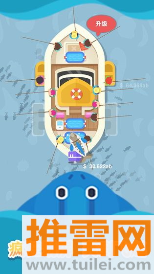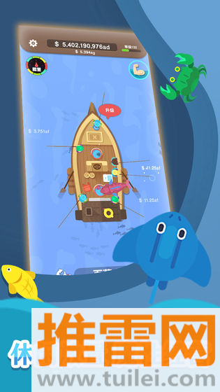 一起来钓鱼这游戏是让你在摸鱼的时候真去“钓鱼”——不用盯屏,挂机也能赚金币,点几下还能手动狂拉鱼竿,节奏全由你定,画风是那种清爽的卡通风格,海面波光粼粼,小鱼游得慢悠悠,连船员打哈欠都透着一股慵懒劲儿,你一开始只有一条破船和一根竿,但慢慢能升级船体、雇更多渔夫、提升收竿速度,甚至开着船从近海一路钓到外太空——没错,连火星上都有鱼在游,虽然玩法简单,但那种金币自动涨、鱼群哗哗上钩的反馈感特别解压,等公交、排队、午休时点两下,不知不觉就钓穿了好几个海域,别看它佛系,其实暗藏“肝点”:你总忍不住想再升一级,看看下一片海里会不会跳出一条金龙鱼。
