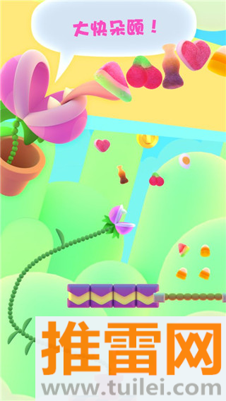 嘴馋植物最新版这游戏是让你养一株“贪吃又莽撞”的植物,从一颗小芽开始,边吃边长、边长边冲,一路往上蹿,你点一下屏幕,它就张嘴往前扑,滑动手指还能调整方向,专挑路上的零食、虫子、金币啃,吃得越多长得越快,茎秆越长越夸张,但别光顾着吃,墙、钉子、旋转刀片这些障碍可不会手下留情,一碰就gameover,好在游戏里能解锁一堆奇奇怪怪的植物——南瓜头、仙人掌、戴墨镜的向日葵,连花盆都能换成可乐罐、青花瓷或者破纸箱,养得越久越有个性,操作就一只手搞定,地铁上、排队时掏出来玩两关,轻松又上头,关键是看着自己养的植物越吃越壮,莫名有种“老父亲”的成就感。
