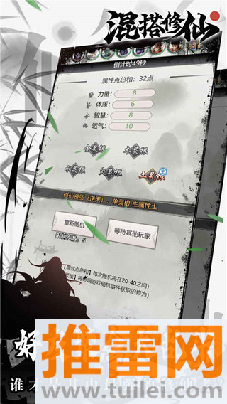 混搭修仙手游是把“修仙”和“吃鸡”硬生生搓成一锅——八个人开局,每人都是刚入门的小修士,没刀没剑,全靠选选项活命,一局最多五分钟,你不是在打坐炼气,就是在生死抉择:进山洞还是绕道?信师父还是信队友?扔石头探路还是直接冲?选错了当场暴毙,雷劈、毒瘴、心魔、叛徒,死法五花八门,目标就一个:活到最后,吸干其他七人的气运,羽化登仙,但有意思的是,这游戏还暗藏玄机——要是其他人死太快,你连下一轮都进不去,属性点都点不满,所以别光想着刚,有时候“苟”才是王道,操作就是点点点,节奏快、没加载、不占内存,蹲个厕所都能打两局,赢了上排行榜,输了再来,反正五分钟而已。