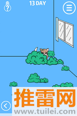 3、第3关眼镜是关键,镜片分别藏在抱枕下和钟里,合成后给狗戴上,它才会晕乎乎让路。