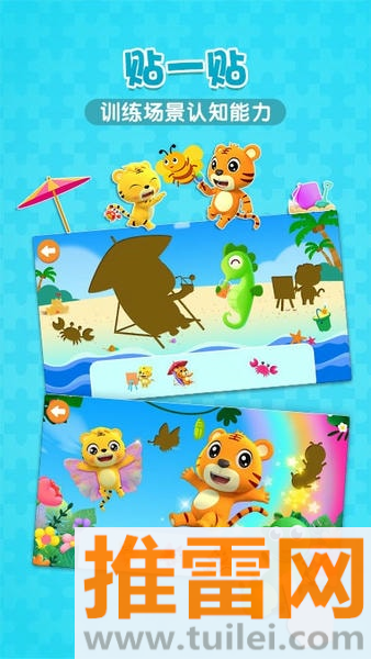 2、五种玩法轮着来,有的要拖动,有的要旋转,有的带轮廓提示,玩法不重复,孩子不容易腻。