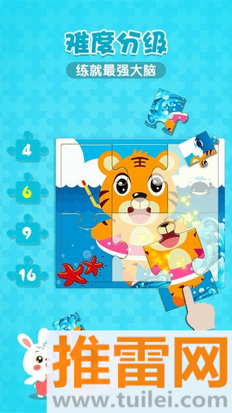 2、拼图难度分四个等级,从最简单的2x2开始,慢慢过渡到4x4,宝宝可以根据自己的能力一步步挑战。