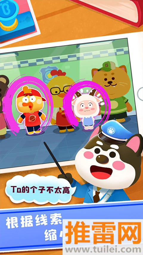 奇妙探案日记这游戏是给四五岁的小娃娃量身定做的“小侦探训练营”,孩子点开就能跟着警局里的卡通角色一起查案子,不是那种吓人的大案,都是像谁偷了甜甜圈、小猫跑哪儿去了这种生活里能碰上的小事,整个过程不用识太多字,靠听、看、点、拖就能玩,关键是让孩子动脑子——比如比对脚印、记住颜色、找不同、拼画像,边玩边练观察力和判断力,家长在旁边搭把手,问几句“你觉得是谁干的”,孩子立马来劲儿,不知不觉就把逻辑思维给练出来了。
