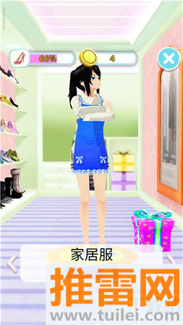 4、换衣服得进衣帽间,点衣柜出现一堆衣服,挑中一件拖到她身上,立马变装,连发型都能换。