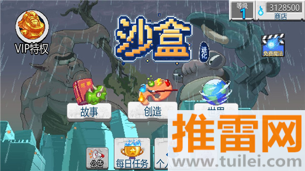 1、游戏分冒险和沙盒两种模式,冒险模式有固定关卡和操作角色,沙盒模式则完全自由创造。