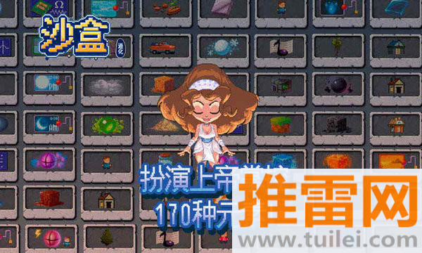 1、点击屏幕上方的物品栏选择元素,比如树、火、动物,点地图位置就能放置。