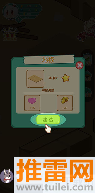 2、建房子或者放家具时,点建筑菜单,选好款式,拖到空地上调整位置,确认后自动开始建造,材料够就直接开工。