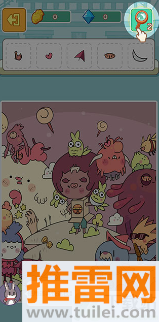 1、进游戏先点屏幕下方的寻物图标,上面列几个小物件,你在大图里找到对应的东西点一下就行,找全了就能拿星星奖励。
