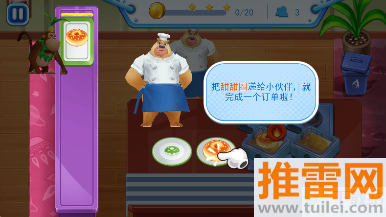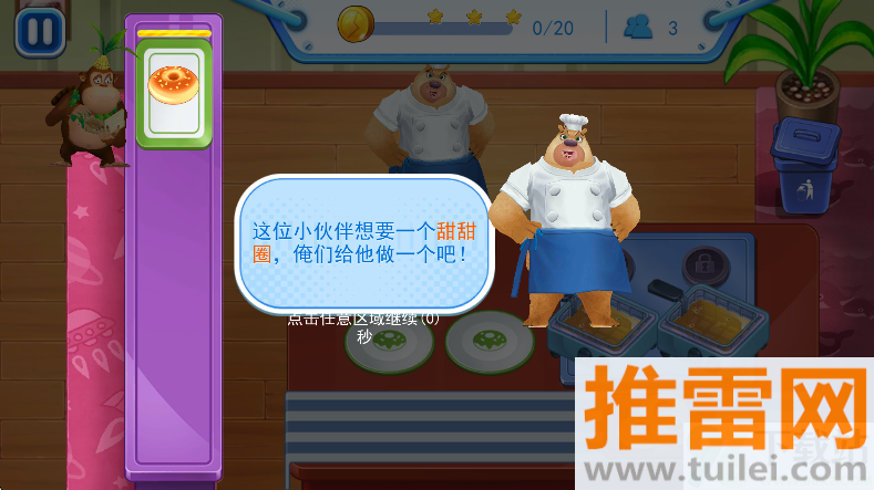 3、新手关让你做甜甜圈,记得先调面糊,再炸再撒糖粉,每一步都有提示箭头,千万别跳步,不然做到一半发现缺材料就得从头来。