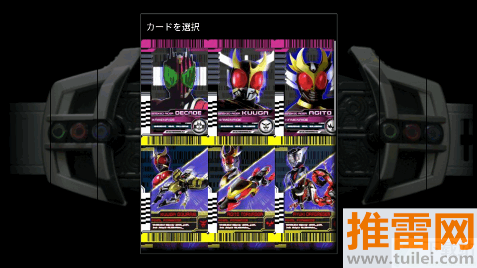 3、选定卡片后,点击驱动器正中央的位置,将选中的骑士卡插入腰带中,这时卡片会有明显的嵌入动画和音效反馈。