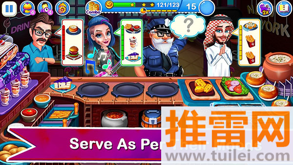 2、游戏包含700多个关卡,分布在13个以上以真实国家或地区为原型的主题餐厅中,每关目标逐步提升。