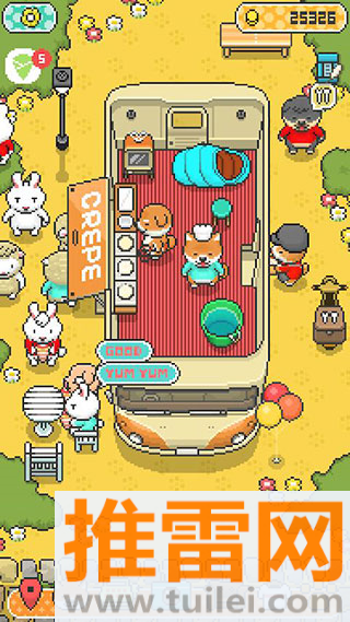 小狗烹饪厨师(FoodTruckPup)最新版这游戏,说白了就是让你开着一辆会跑的可丽饼餐车,带着一群毛茸茸的小狗打工人,在像素风的街头边做边卖边过日子,你既是老板又是主厨,从摘草莓、打蛋液到摊饼、装盘,全得亲手来,客人一多,还得满街发传单拉客流,但别慌,攒点金币就能雇新狗狗——有的负责捡香蕉,有的站在门口迎客,手脚麻利得很,更妙的是,这些小狗会饿、会累、会脏,你得给他们点外卖、安排午休、甚至洗个泡泡浴,不然干活没精神,餐车还能装修,从猫猫商店买张小桌子、铺块花地毯,再给全员换上统一围裙,瞬间变成街坊最受欢迎的流动甜品站,玩法轻松但细节拉满,白天出摊赚钱,晚上回车里看狗狗打呼噜,治愈又上头。