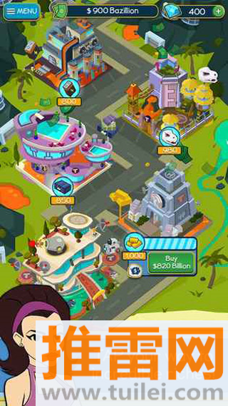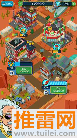 1、玩家通过点击屏幕获取初始金币,用于购买和升级各类商业建筑,如便利店、商场、科技园区等。