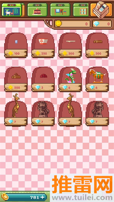 2、开设各类商店如餐饮店、花店、服装店等,每店需安排三名动物员工负责进货与销售以赚取金币。