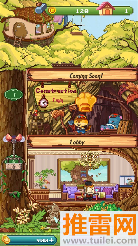 动物之村(英文名AnimalTree)这游戏就是让你当一个住在森林里的树屋包租公——不过租客全是动物,你得给刚搬来的小狐狸安排个房间,给爱做饭的浣熊塞进日料店打工,还得给神探猫威尔森递线索破案换饼干,树屋一层只能住五只,人多了就得往上盖楼,盖得越高,来的动物越稀奇,连雪豹、树懒都可能拎着行李上门,你不仅要装修房间、开披萨店、摆花摊,还得研究谁喜欢干啥:猴子别放收银台,让它去爬高上货;鸭子放水族馆才肯多卖鱼,装修道具有三千多种,从吊灯到地毯随便搭,收集控看到会手抖,游戏节奏不快,但越玩越上头,因为你总想着“再盖一层,再招一只”,结果一抬头,天都黑了,动物之村不是什么烧脑大作,但它让你在像素小屋里,慢慢搭出一个热热闹闹的动物乌托邦。