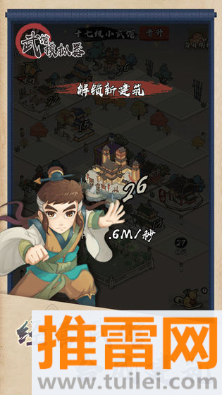 武馆模拟器这游戏中就是让你当个武馆老板,从街边一间破瓦房开始,慢慢干成江湖头号门派,不用天天盯着屏幕,挂那儿它自己就能收钱、招人、练功,你白天点几下,买个新屋子、合成个高级武馆,晚上回来铜钱哗哗涨,路过的侠客看中你家招牌,住进来就给你打工,徒弟练出名堂了,还能派出去打副本、闯关卡,一边是慢悠悠的经营,一边是回合制的江湖对决,节奏不紧不慢,但越玩越上头,没事点开看看,武馆又大了一圈,门口排队的学徒又多了几个——这感觉,还真有点当掌门的派头。