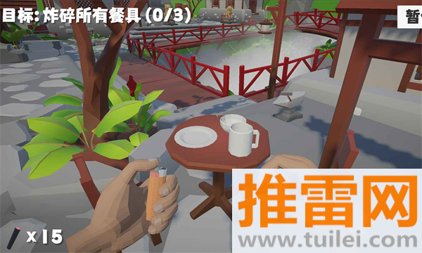 1、游戏设有多个关卡,每关目标不同,包括炸飞易拉罐、击碎餐具、引爆特定区域等。