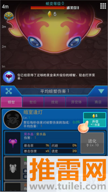 2、优先升级主力螃蟹的攻击力,后期再进行整体强化。