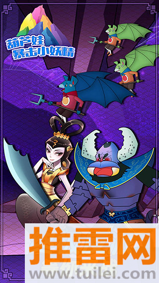 1、玩法主要是挂机加塔防,你把葫芦娃和其他神话角色排好队,他们自己就会往前冲,见妖就打,不用你一直点着屏幕。