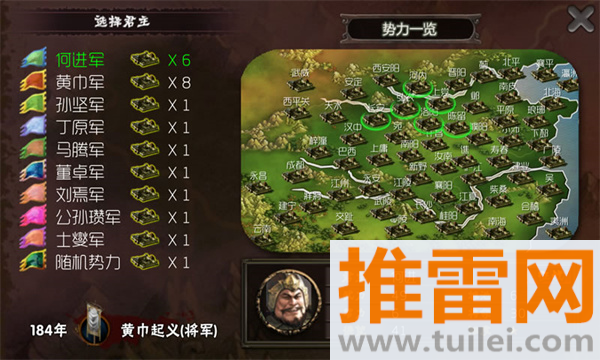 1、进游戏先选模式和难度,确定后选势力,刘备曹操这些大姓开局城多,小势力钱少但容易上手。