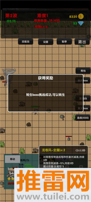 3、每成功防守住一波敌人,屏幕上就会弹出三个随机的技能让你选择一个进行学习。