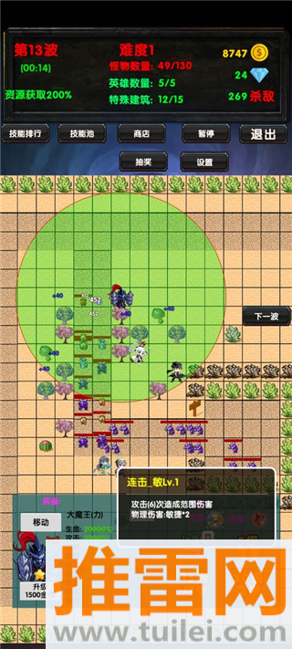 4、用杀怪赚来的钱,你可以购买新的英雄上场,或者给已有的英雄升级。