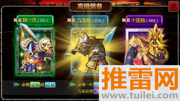 4、装备靠刷宝箱和做任务拿,青虹剑、赤兔马这些传说东西都有出处,不是开局就送。