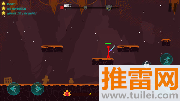 1、左边虚拟摇杆控制火柴人上下左右走动,推到底就是冲刺,能快速接近或脱离敌人。
