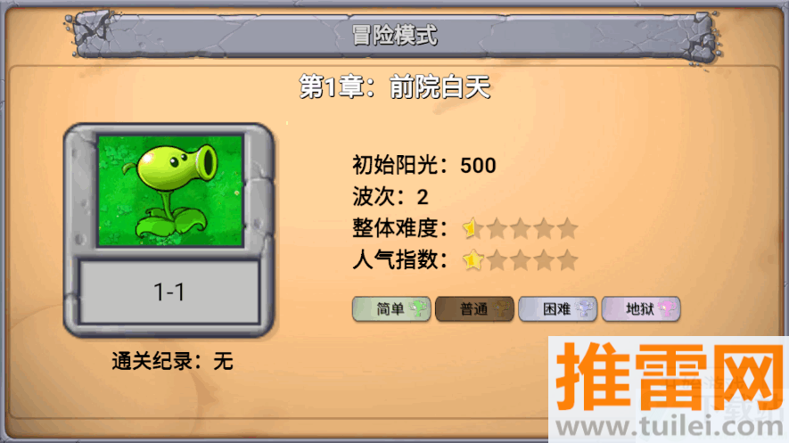 4、开局别光顾着看说明,赶紧把豌豆射手安排上阵,前几波僵尸速度不快,早点种几个能稳住场面,打得快还有钻石拿。