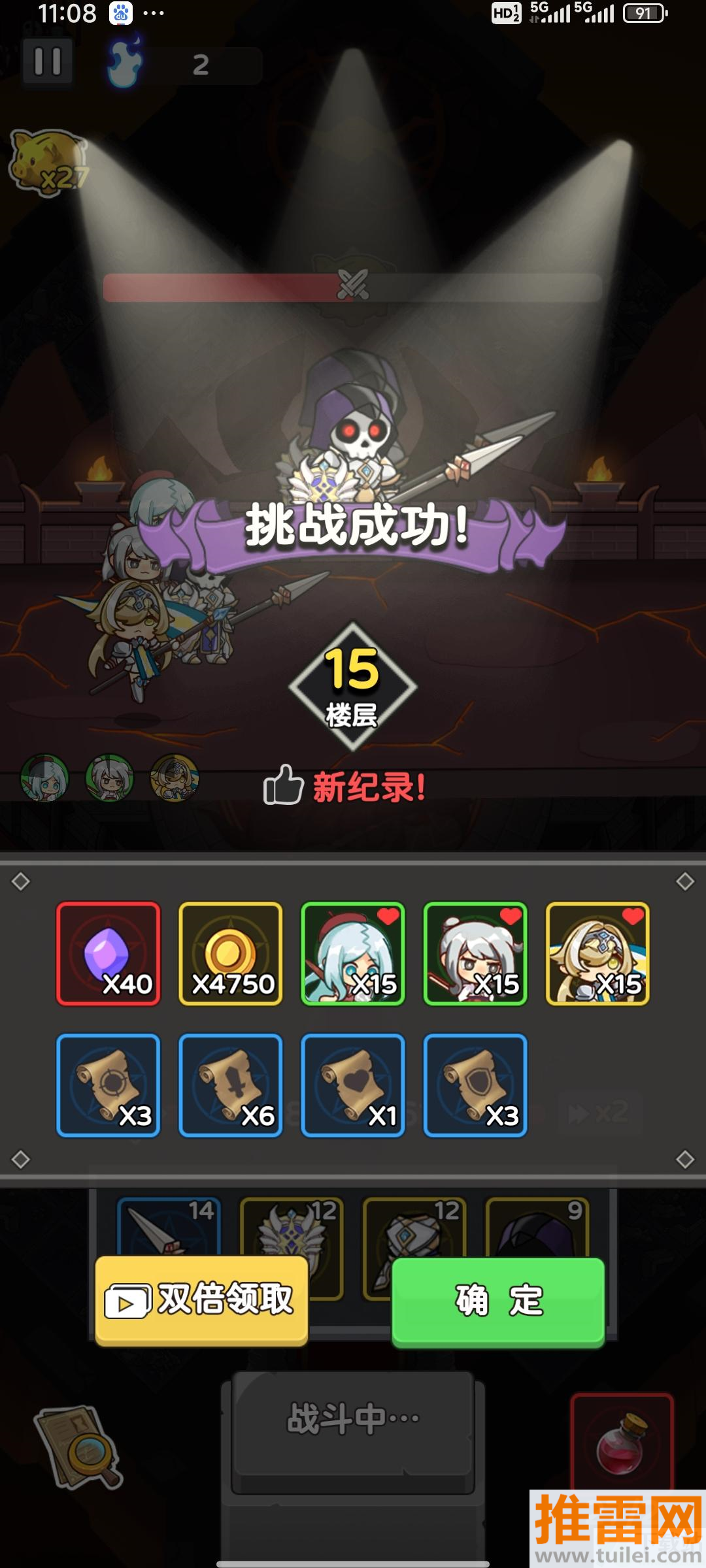2、走到敌人所在的格子会弹出战斗界面,战斗为自动进行,但胜负取决于你此前搭配的装备和属性强弱。