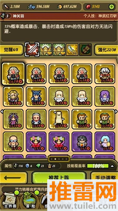 3、组队时可以点“推荐阵容”自动搭配,也可以手动换人,把强力角色往前排放,辅助类的放后排,站位合理打起来更顺。