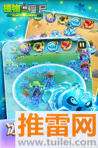 植物KO僵尸官方版这游戏把塔防玩出了新花样——你不是直接种植物,而是靠“消除”来发动攻击,屏幕上会不断冒出彩色方块,三消一下,对应的西瓜卫士就“砰”地射出一发子弹,打得僵尸东倒西歪,僵尸也不是傻乎乎往前冲,有的穿盔甲、有的会隐身、有的带毒,而你的植物也有火、冰、电等属性,彼此之间有克制关系,用对了事半功倍,用错了可能被反推,画风走的是软萌路线,西瓜戴墨镜、豌豆穿小裙子,打起来特效还贼炫,冰冻炸裂、火焰喷射,看着就解压,关卡从童话城堡一路打到海盗船、樱花林,每换一个主题地图,僵尸造型和机制也跟着变,玩久了也不腻,关键是操作不复杂,动动手指消个方块就能开打,但想三星通关?得动脑子排兵布阵才行。