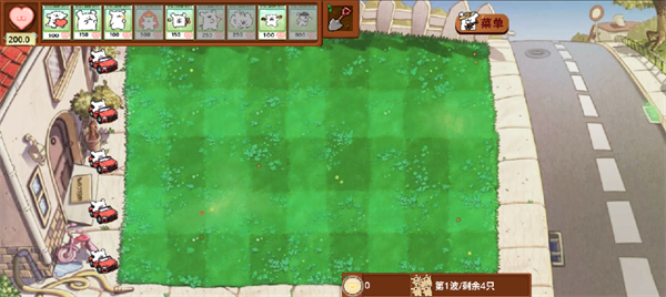 2、点击“开始游戏”进入战场,初始资源由系统提供,用于部署第一只爱心小白。