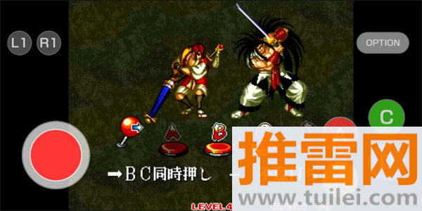 3、战斗中摇杆控制移动和方向,拳脚键配合方向搓招,比如↓↙←+斩是经典必杀。