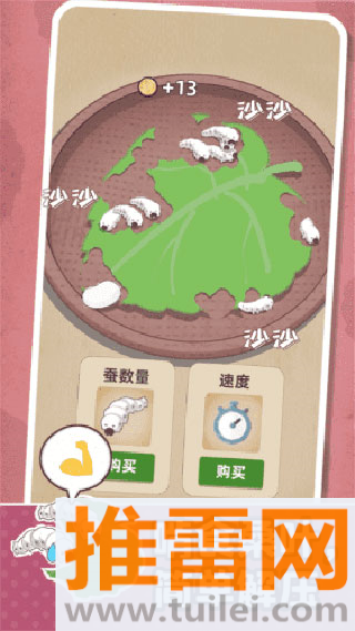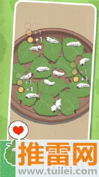 2、你的蚕宝宝会不停地生产金币,你只需要用手指在屏幕上点击它们,就能加快金币的收益。