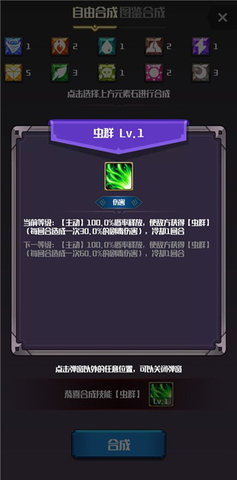 2、将收集到的元素石进行组合,便能炼成各种技能,但合成结果并非一成不变,它会受到多种因素的动态影响。