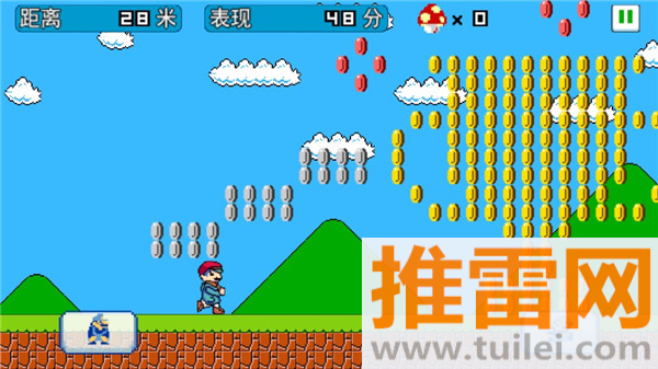 1、屏幕点一下,马里奥就跳起来,点得久跳得高,点得快跳得密,手感得自己找。