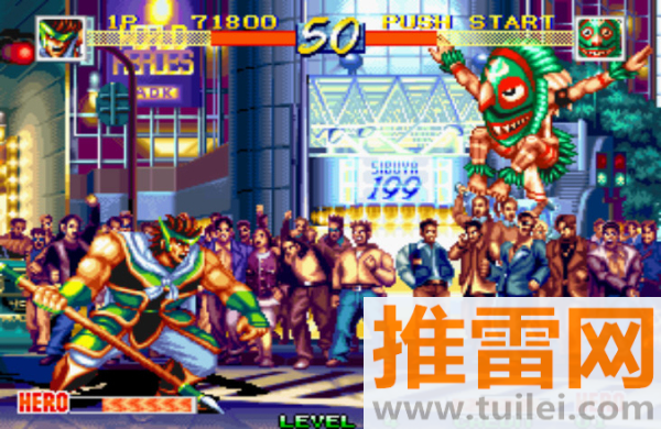 世界英雄是SNK在90年代初整出来的一款格斗老味儿十足的街机作品,1992年那会儿刚出来的时候,虽然没像《拳皇》那样炸街,但在游戏厅里也算有一席之地,那时候不少人去玩,图的就是个新鲜——能操控孙悟空、开膛手杰克这种跨时空乱入的角色干一架,游戏设定也挺扯,说是个博士搞了个时间机器,把古今中外一堆猛人拉来比谁更狠,听着就带劲,玩家打起来不只是拼操作,还得碰运气,因为很多技能触发带随机性,尤其是那几招超必杀,用好了能翻盘,用不好就只能干瞪眼。