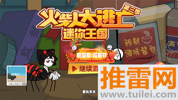 火柴人大逃亡3这游戏把火柴人扔进一堆稀奇古怪的地方,一会儿在冰箱里调解雪糕和霉菌的纠纷,一会儿又钻进龙宫偷宝贝,连春节都安排上舞狮放炮的副本,它不靠画面炫技,就靠一股子无厘头劲儿撑场子,剧情对话全是冷不丁冒出来的搞笑对白,配上轻快的背景音乐,玩着不累心,每个大关卡底下藏着好几个分支故事,你选错一步,可能下一秒就被土球砸扁,或者被可乐喷上天,但死得也挺滑稽,让人笑出声。