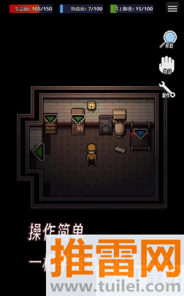 1、游戏采用俯视角操作方式,玩家需要在开放地图中搜寻食物和干净水源。