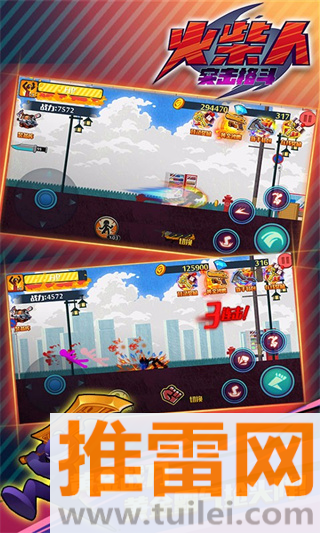 2、右下角红键是拳,绿键是腿,蓝键是跳,三个键组合按能搓出不同连招。