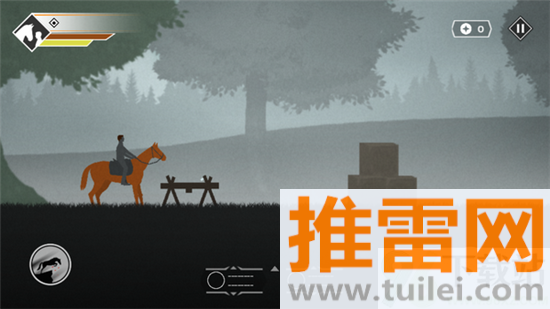 1、屏幕左下方有个虚拟摇杆,手指按住往哪个方向推,马就往哪边走,推得越远速度越快,松手就慢慢停下。