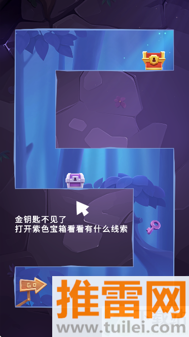 3、中间有教学关卡专门讲颜色匹配的事儿,拿了红钥匙去开红箱子,错了打不开,得重新找对的。