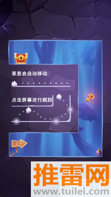 2、第一关教你基本操作,手指点一下就跳一下,连续点就能连续跳,试着跳到高台上拿第一把钥匙。