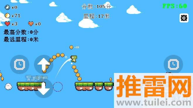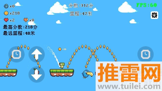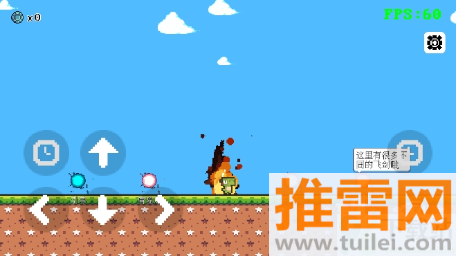 1、屏幕左边有两个箭头,点上面的就跳,点下面的就下蹲,反应要快,很多机关就差那零点几秒。